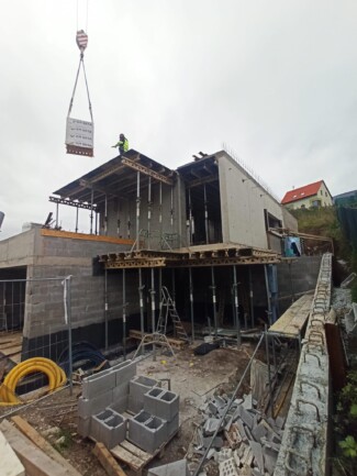 Během realizace jsme celá rodina (2 dospěli, 3 děti) bydleli v dolním patře domu, ale i tak se to zvládlo. Poskytlo mi to možnost každý být každý den na stavbě a dohlížet na průběh věci přeměřovat. Nebyl problém na cokoliv se zeptat a poukázat na nedostatek, nedodělek... (I mě to dodávalo na klidu :)) Zedníci museli lézt do 2.NP po lešení a oknem do místností po celou dobu stavby. Děkuji za to, velice zredukovalo to nepořádek v místnosti, co jsme bydleli.