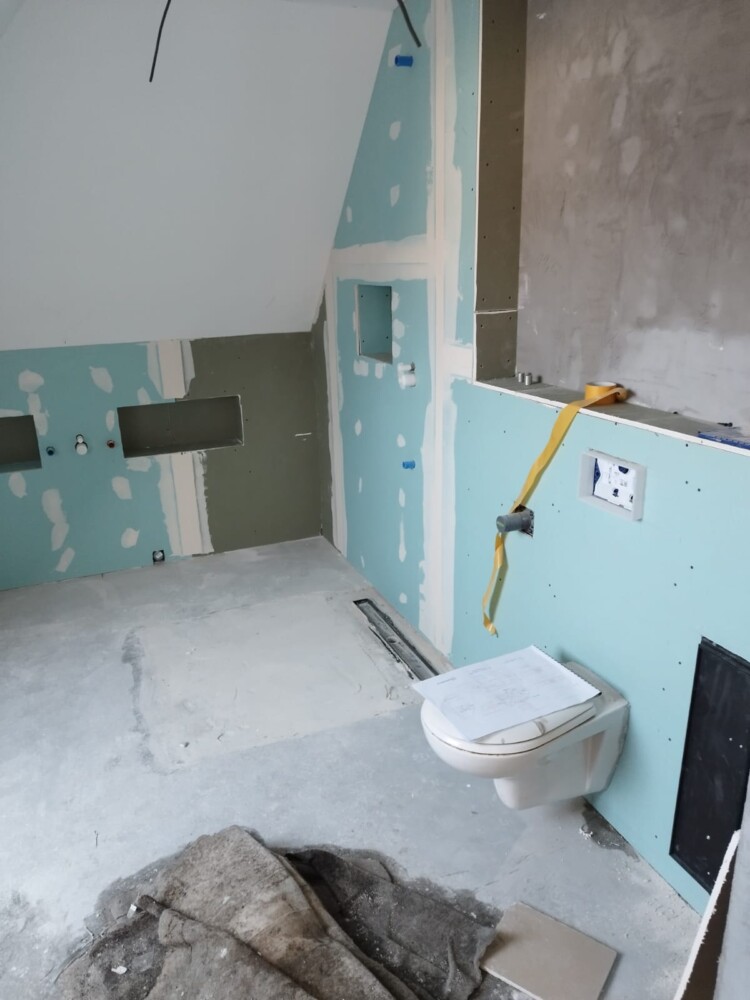 Během realizace jsme celá rodina (2 dospěli, 3 děti) bydleli v dolním patře domu, ale i tak se to zvládlo. Poskytlo mi to možnost každý být každý den na stavbě a dohlížet na průběh věci přeměřovat. Nebyl problém na cokoliv se zeptat a poukázat na nedostatek, nedodělek... (I mě to dodávalo na klidu :)) Zedníci museli lézt do 2.NP po lešení a oknem do místností po celou dobu stavby. Děkuji za to, velice zredukovalo to nepořádek v místnosti, co jsme bydleli.